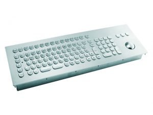 Este teclado, contruído em aço inox, é robusto e durável, e está projetado para ser montado de forma frontal, de modo a ser resistente a poeira e líquidos mesmo quando manuseando o trackball (IP54 em modo dinâmico).
